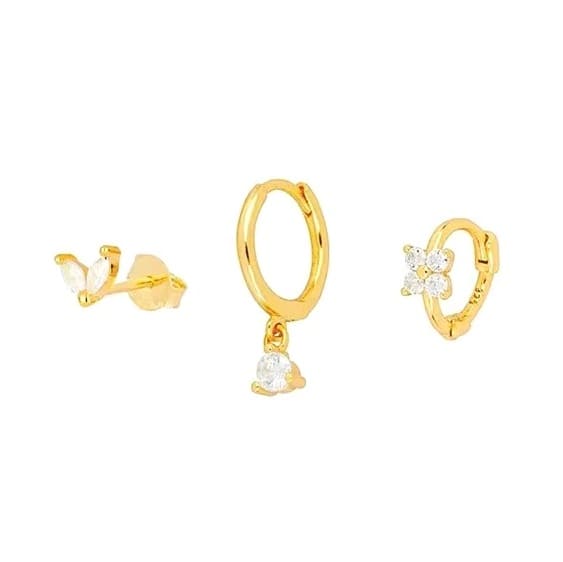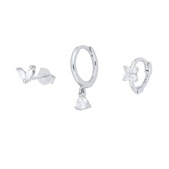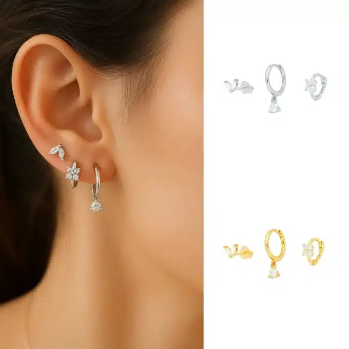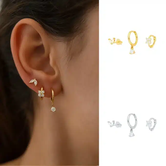 Ce trio de boucles d’oreilles pour femme allie élégance, brillance et délicatesse.